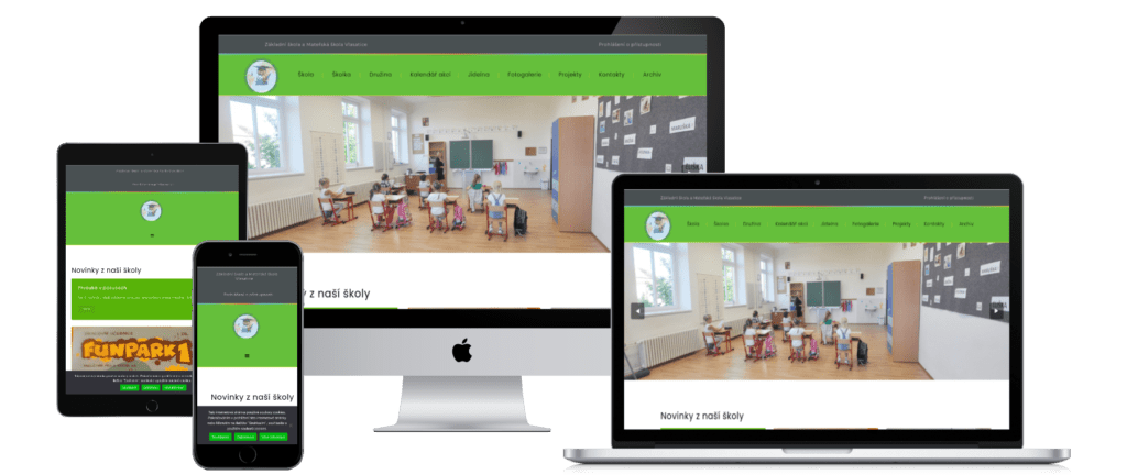 Komplexní webové stránky, včetně požadavků na přístupnost, Základní školy a Mateřské školy ve Vlasaticích.